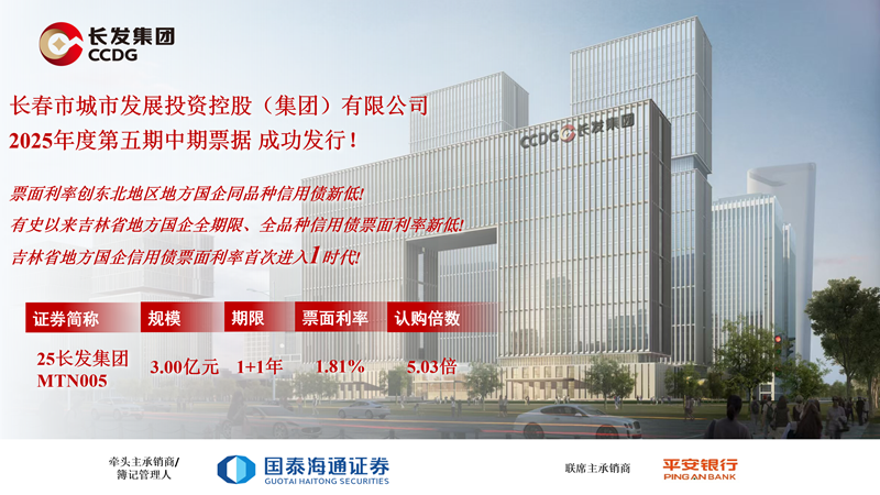長發集團于2025年8月14日成功發行3億元中期票據,票面利率1.81%,在創下東北地區同品種債券和吉林省全品種全期限債券地方國企利率新低紀錄的同時,更是吉林省地方國企債券利率首次突破2%的大關,成功使得吉林省地方國企債券利率邁入1時代,獲得市場廣泛關注,體現了資本市場對長發集團資信水平的高度認可。在市委市政府的領導和幫助下,長發集團長期以來堅持引進來和走出去的戰略,按照短、中、長期相結合的原則,超前謀劃,提前布局,持續不斷引入域外投資人,與頭部金融機構對接,提升資本市場形象,推動越來越多的投資人關注并投資長發集團乃至吉林省內企業,起到了關鍵的引領和示范作用。今年以來,更是借助國家宏觀政策以及我市國有企業改革為契機,不斷調整債券發行策略,連續五次刷新東北地區及吉林省債券發行利率新低紀錄。2025年長發集團債券發行平均利率為2.46%,較去年下降0.41%。近五年來長發集團不斷壓降債券發行利率,累計節約利息支出超億元,大幅降低融資成本,緩解償債壓力。長發集團動態應對政策及市場環境變化,相機決斷發行策略,精準判斷市場發行窗口,實現債券發行利率不斷走低,進一步帶動地區債券發行利率整體持續下行,可以說長發集團作為東北地方國企中最優質的發行主體之一,已經成為東北地區債券市場的晴雨表,也起到了壓艙石的作用。